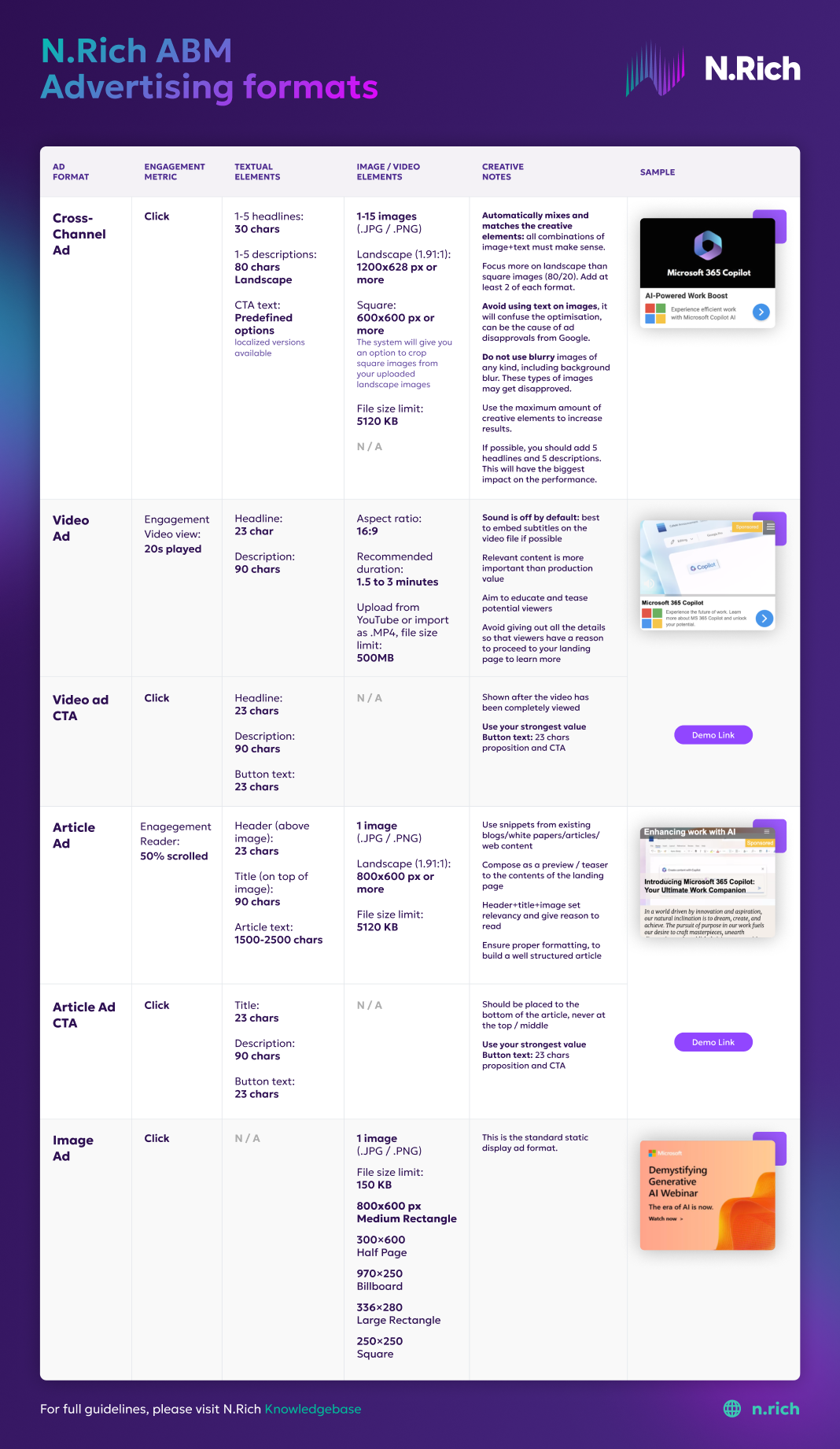 This document provides the technical specifications for the three custom ad formats used on N.Rich ABM platform.